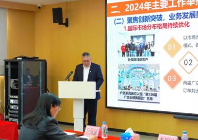 公司黨支部書記、董事長周遜姜以《務實謀新提質(zhì)效,深化改革促發(fā)展》為題作工作報告。報告從聚焦主業(yè)、賦能蓄力、培根鑄魂三個方面總結(jié)了公司2024年的工作情況。2024年,廣紡聯(lián)公司統(tǒng)籌抓好地塊交儲、物業(yè)管理等多項工作,公司實現(xiàn)營業(yè)收入完成預算目標值103%;利潤總額完成預算目標值156%。報告指出,2025年廣紡聯(lián)公司將圍繞廣州輕工集團及紡織公司的總體部署,緊扣“數(shù)智領航鏈全球,提質(zhì)增效建新功”的工作主題,從緊盯主責主業(yè)、提升改革深化、堅持黨建引領、加強風險防范、強化人才隊伍建設等五大方面推動經(jīng)營工作實現(xiàn)質(zhì)的有效提升。
